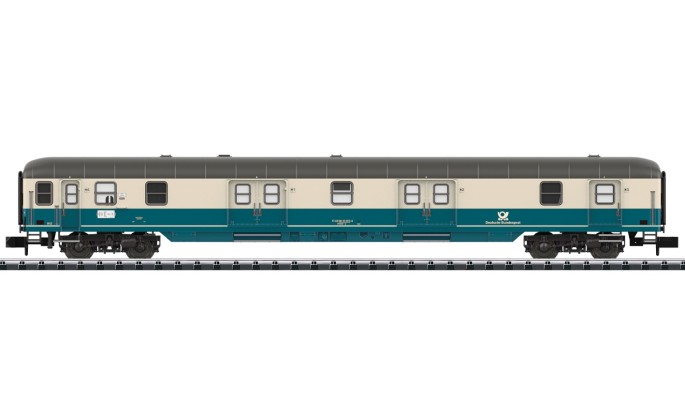 Der Postwagen der Bauart Post mr-a erscheint erstmalig als in der Spur N als blau-beige Epoche IV Version. Der markante Wagen der Deutschen Bundespost mit den beiden großen Schiebetüren ist eine komplette Neukonstruktion und besitzt eine, ab Werk installierte Zugschlussbeleuchtung. Der Einbau einer Innenbeleuchtung (Art. 66610) ist technisch vorbereitet und kann nachträglich erfolgen.